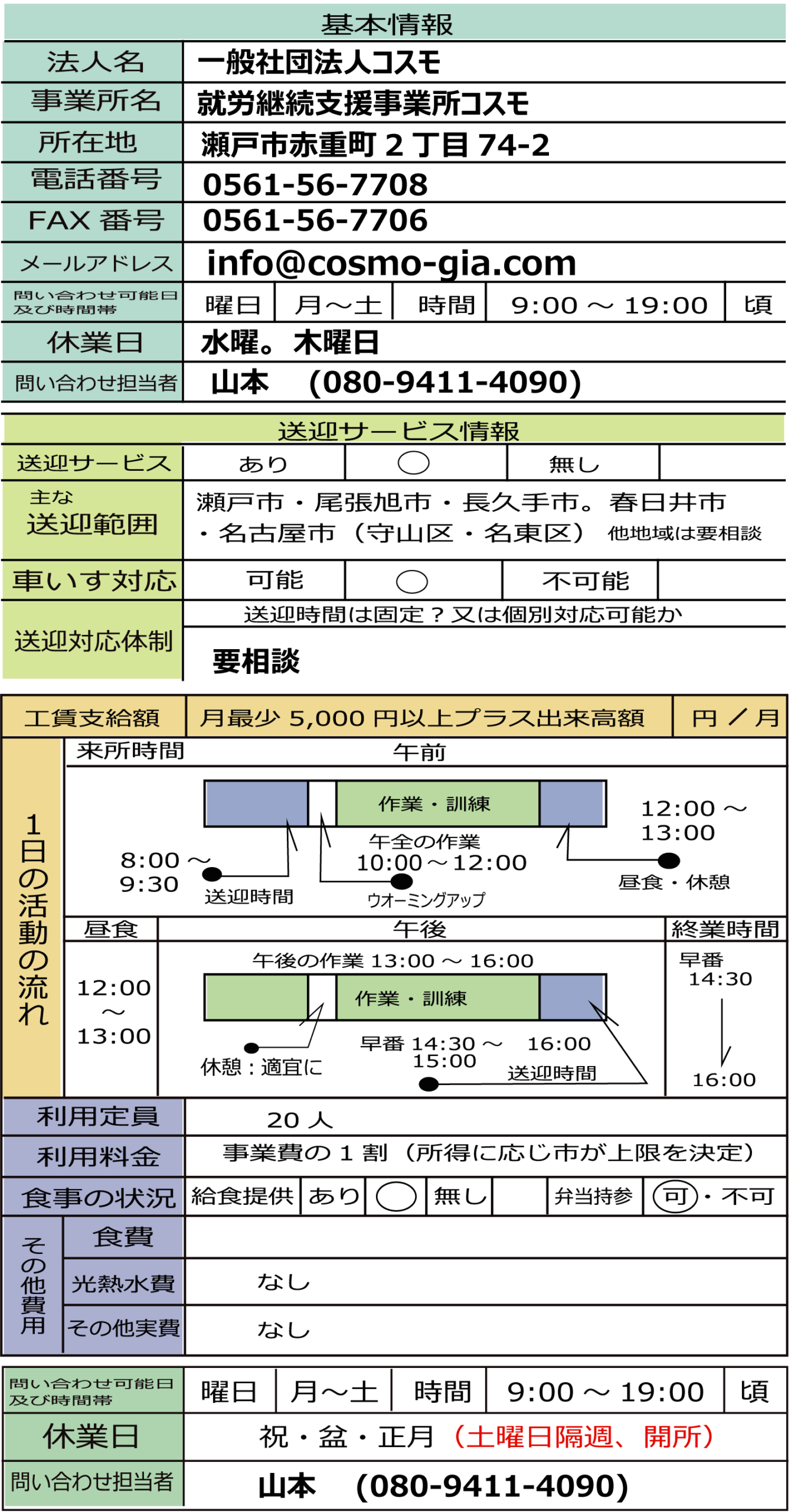 休日:水曜日/木曜日
